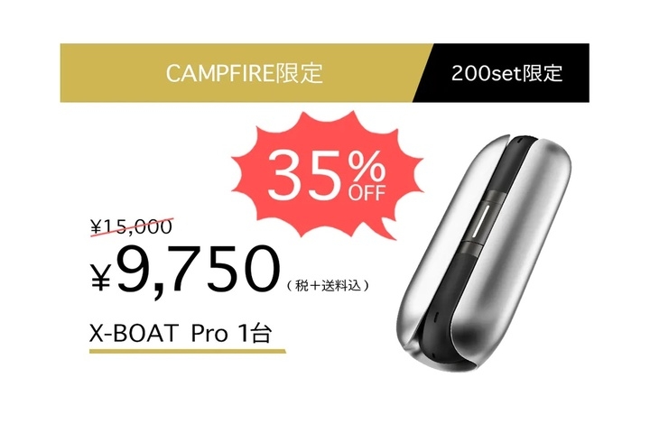 9,750円(税込・送料込み)(200人限定):「X-BOAT PRO」1セット(本体、充電ケース、USB充電ケーブル、取り扱い説明書各1つ)*一般販売予定価格の35%OFF